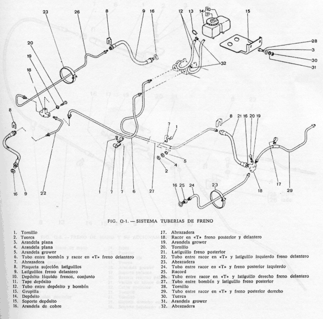 cilindro primario, dal quale uscivano due tubi (uno per l'anteriore e uno